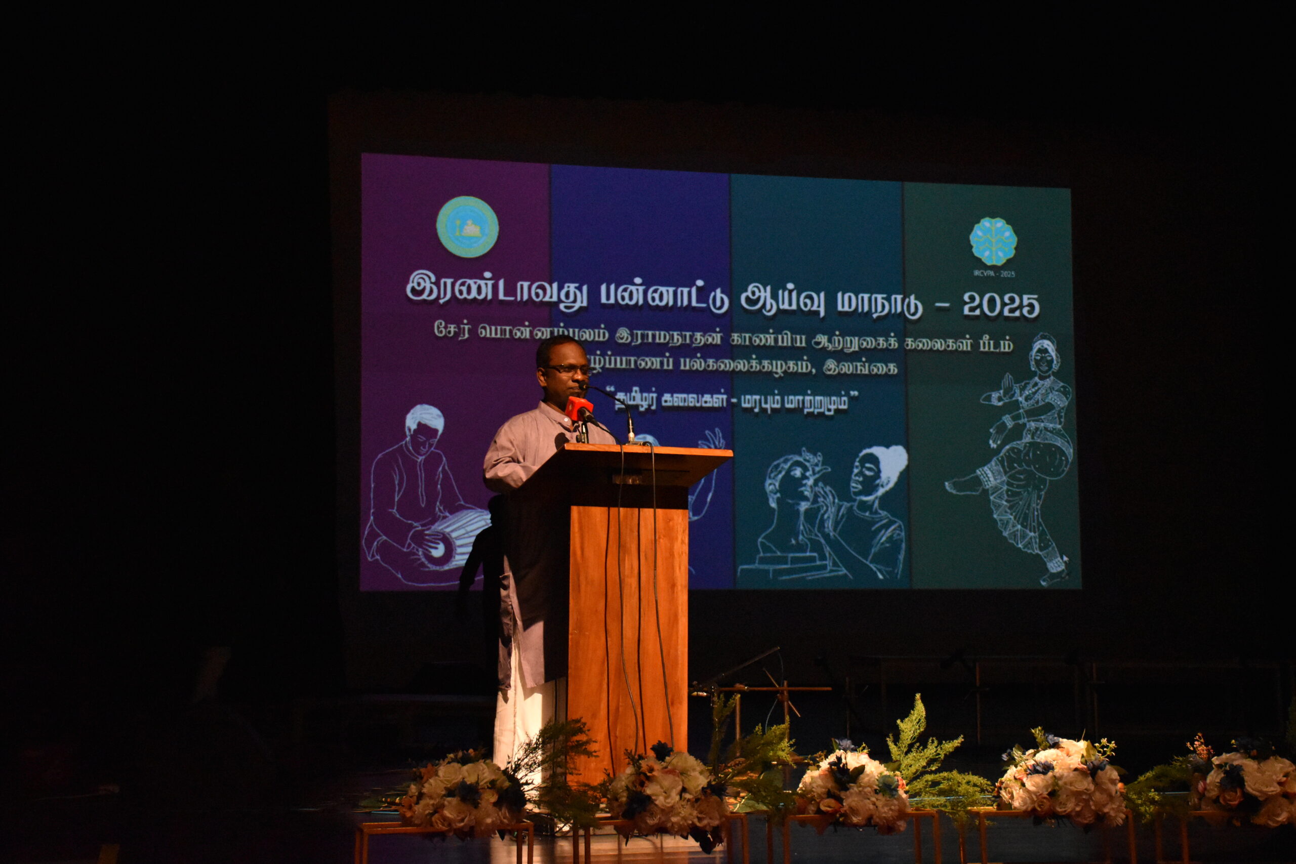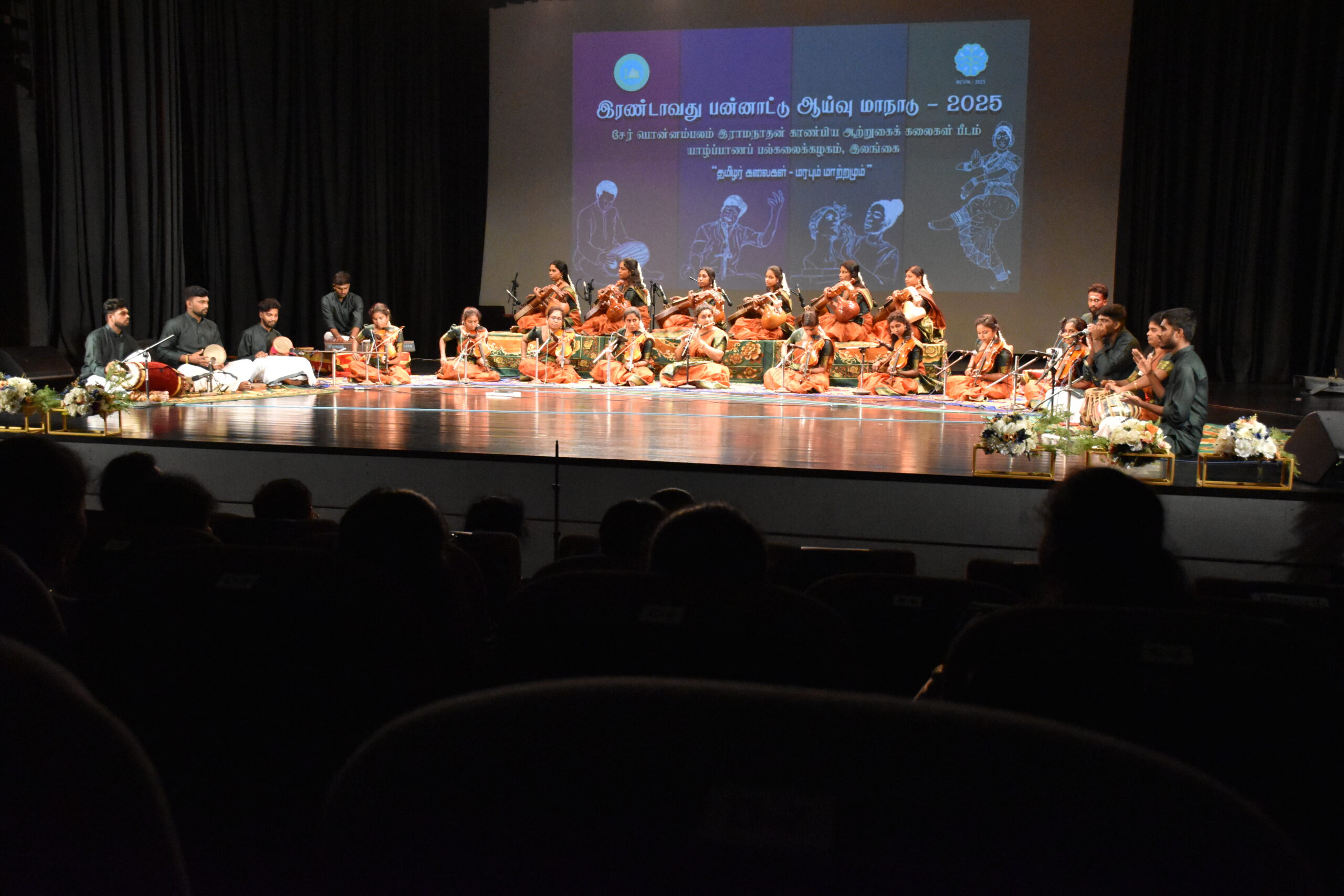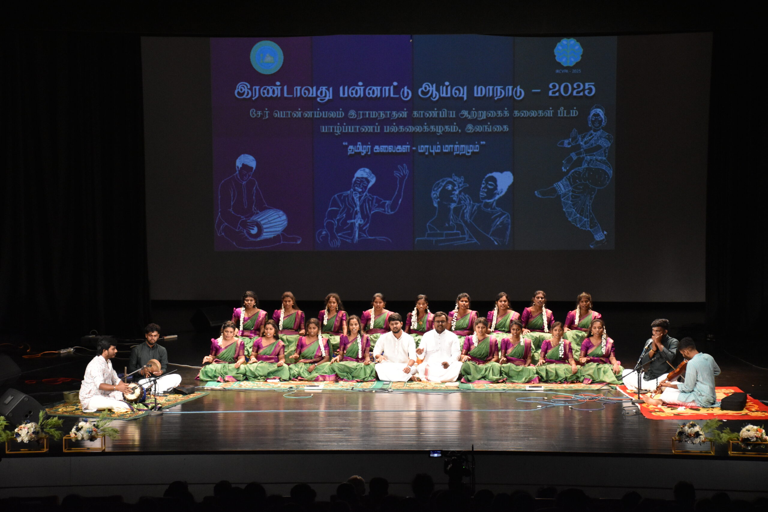நான்கு அமர்வுகளாக இம்மாநாட்டிற்காக ஏற்றுக்கொள்ளப்பட்ட கட்டுரைகள் பல அளிக்கை செய்யப்பட்டன. இந்த அமர்வுகளின் தலைவர்களாகப் பேராசிரியர் கி.விசாகரூபன், பேராசிரியர் க.மகேஸ்வரன், பேராசிரியர் ஏ.என்.கிருஸ்ணவேணி, பேராசிரியர் ந.சண்முகலிங்கன் ஆகியோர் பணியாற்றியிருந்தனர். இம்மாநாட்டில் வெளிநாட்டு உள்நாட்டு ஆய்வாளர்களின் ஆய்வு அளிக்கைகள் இடம்பெற்றிருந்தன. ஆய்வு மாநாட்டுக் கலை நிகழ்வுகள் 15.11.2025 அன்று மாலை நான்கு மணியில் இருந்து யாழ்.திருவள்ளுவர் மண்டபத்தில் நடைபெற்றது. விரலிசை அமுதம், தமிழிசை அரங்கு, கொஞ்சும் சதங்கை, மணிமேகலை எனும் தலைப்புக்களில் அமைந்த ஆற்றுகை நிகழ்வுகள் இப்பீடத்தின் இசை, வாத்திய இசை, நடன, நாடகத் துறையினரால் அளிக்கை செய்யப்பட்டன. இந்த ஆய்வு மாநாடு தொடர்பான மீளாய்வுக் கூட்டம் 22.01.2026 அன்று சேர்.பொன்னம்பலம் இராமநாதன் காண்பிய ஆற்றுகைக் கலைகள் பீடத்தில் நடைபெற்றது.இந்த ஆய்வுமாநாடும் கலை நிகழ்வுகளும் இந்தியா – இலங்கை அறக்கட்டளையின் அனுசரணையில் மிகச் சிறந்த முறையில் நடைபெற்றது. இம்மாநாட்டிற்கான அனைத்து நிகழ்வுகளும் யாழ்.இந்தியத் துணைத்தூதரகத்தின் ஆதரவில் யாழ்.திருவள்ளுவர் பண்பாட்டு மையத்தில் சிறப்பாக நடைபெற்றது.
